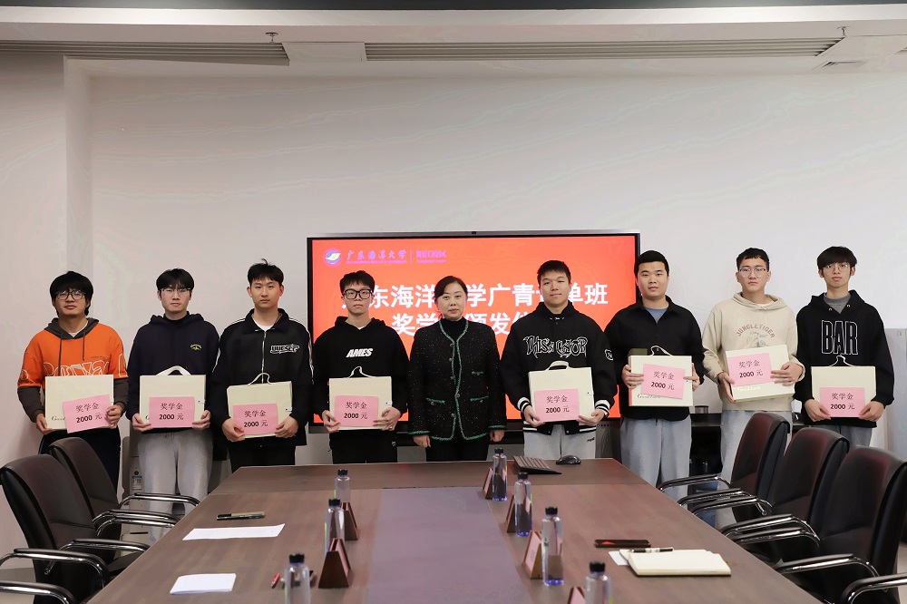 12月24日,广东海洋大学广青订单班奖学金颁发仪式在材料科学与工程学院会议室举行。广东广青金属科技有限公司党委副书记、工会主席王大庆,材料科学与工程学院党总支书记李毅、副院长尹冬松参加了活动。