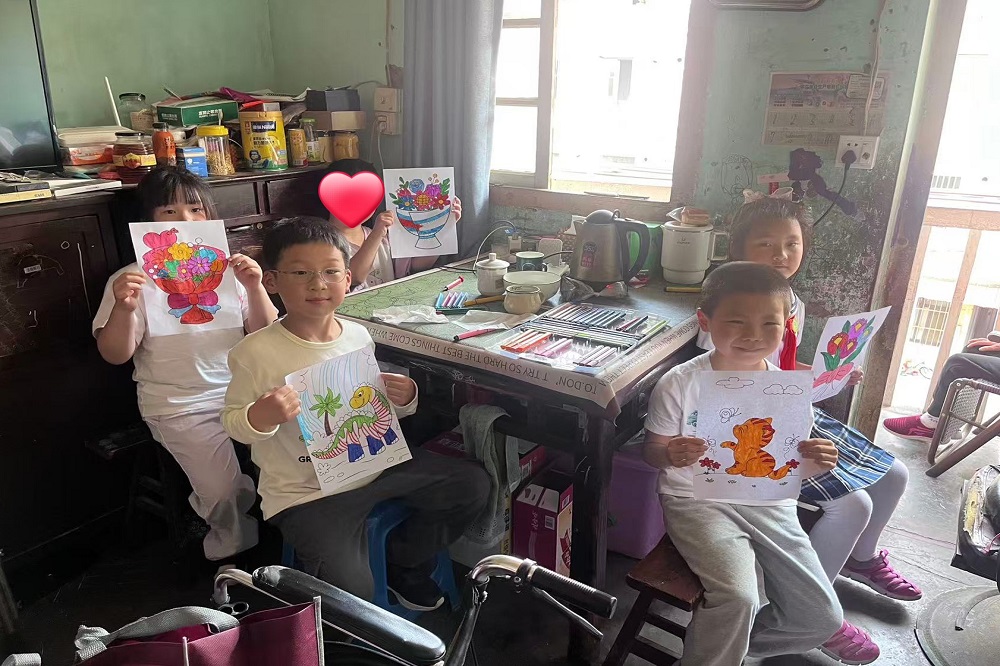 在上海浦东新区乐欣社工服务社工作人员的陪同下,志愿者分组慰问了此前由jinnianhui今年会慈善基金会捐赠人工耳蜗的小朋友一家以及智力障碍的小朋友。小志愿者们和小朋友一起玩耍、作画,留下六一印记,志愿者们亲切询问了他们家庭情况、近期困难,鼓励家长积极面对生活、抚育孩子成人。志愿者代表鼎信集团为他们送上了慰问品以及个人准备的书籍、日用品等。
