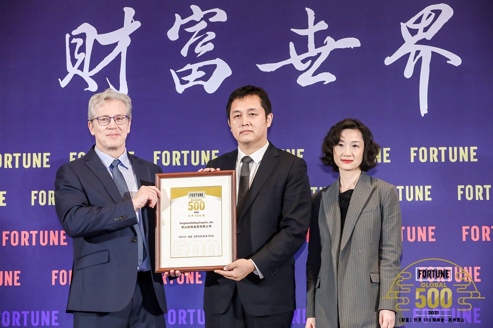On October 19th, the 2021 Fortune Global Top 500 Summit with the theme of “Reshaping a New World” was held in Hangzhou. Nearly 700 managers and well-known scholars representing the Global Top 500 companies gathered to exchange and discuss about the world’s political and economic prospects, a more resilient global supply chain, the role of large companies in the crisis, technological innovation, and sustainable development And other hot topics. Wu Yanjun, assistant to the chairman of Tsingshan Industrial’s Board of Directors, represented Tsingshan Holding Group Co., Ltd. to attend the ceremony and receive the “Fortune 500” medal.